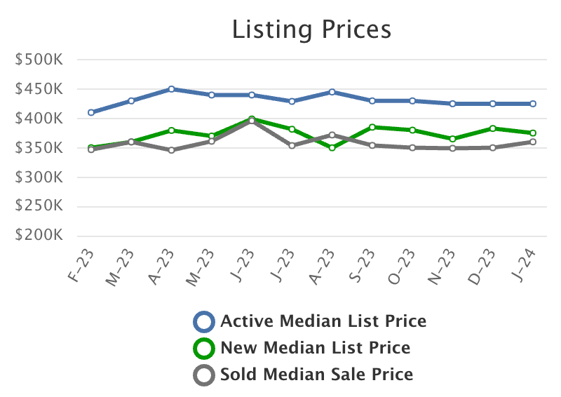 2. Listing Prices: Despite the rising number of listings, median list prices have remained relatively stable, signaling we still have some sense of balance/equilibrium between buyers and sellers.
